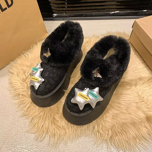 Cozy Kitty Furry Winter Shoes for Women – Velvet-Lined, Half Slippers Snow Boots