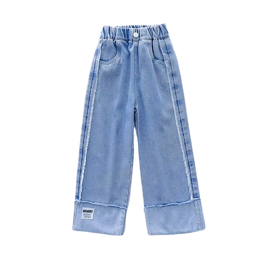 Dívčí široké džíny 2024 – roztomilé a všestranné kalhoty s rovnými trubkami na jaro a podzim