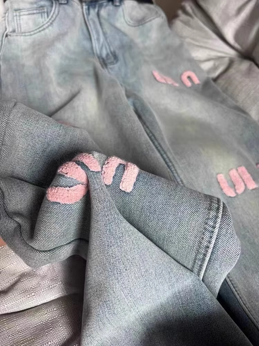 Anime Kawaii Kitty Jeans – roztomilá vyšívaná bavlna volného střihu, kalhoty sající pot, perfektní bestie dárek k narozeninám