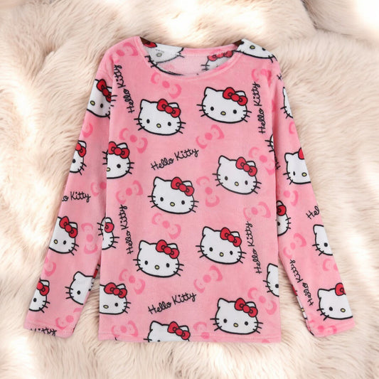 2024 Kitty Coral Velvet Pyžamo – roztomilý zesílený župan a dlouhá zimní noční košile pro ženy