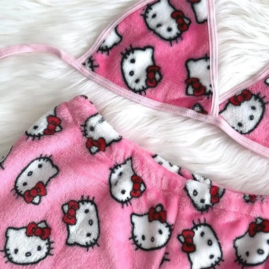 Útulný vánoční pyžamový set Kawaii Kitty - trendy unisex dlouhé rukávy a kalhoty pro všechna roční období!