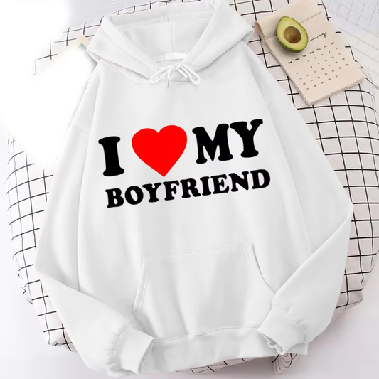 "I Love My Boyfriend" Hoodie – Y2K Streetwear Unisex Pullover Sweatshirt für Damen