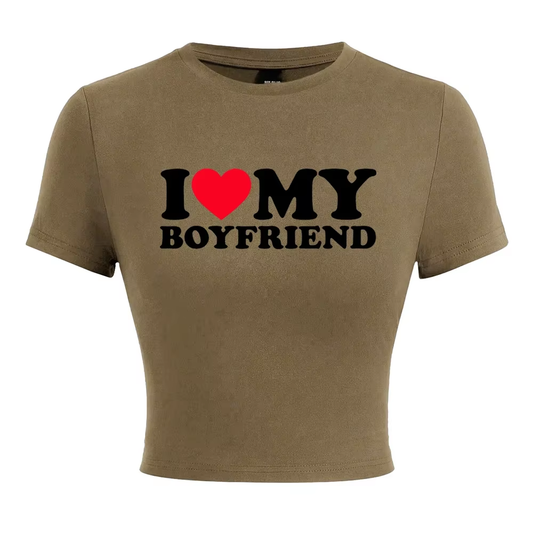 T-Shirt mit Grafik „I Love My Boyfriend“ – Weiches, stylisches und bequemes Freizeit-T-Shirt für Damen