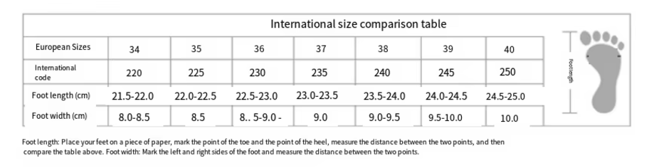 US Size UK Size EU Size Foot Length (cm)